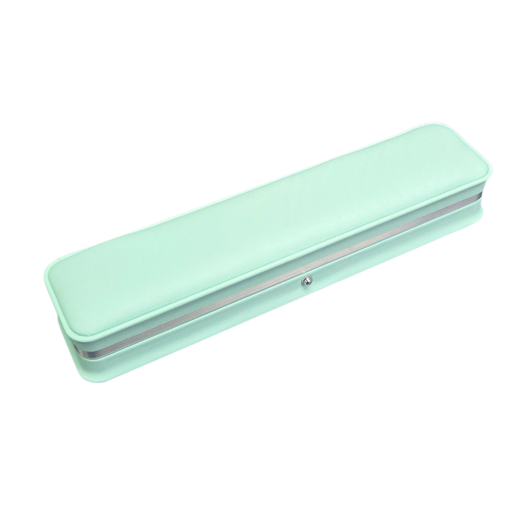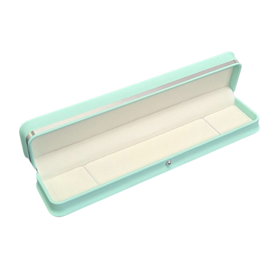 Bracelet Box, Silver Striped with Curved Features – Mint with White Interior – 245 x 55 x 38mm