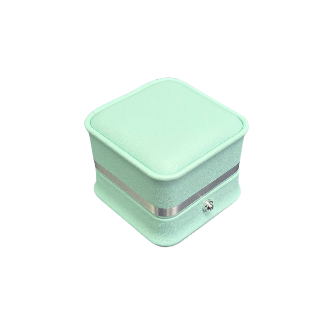 Ring Box, Silver Striped with Curved Features – Mint Leatherette with White Interior – 65 x 65 x 45mm
