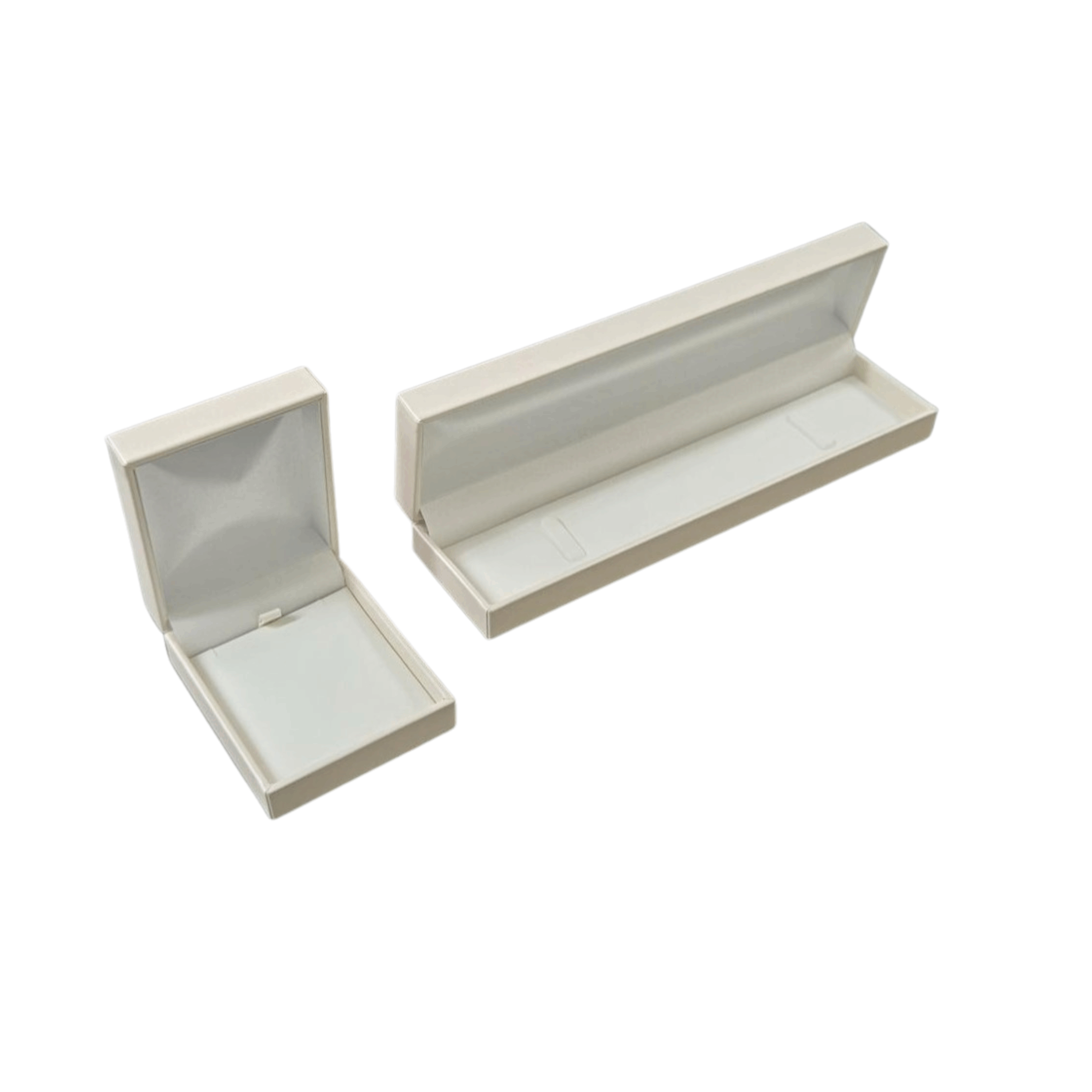 Classic Minimalistic Style Pendant Box in Champagne Leatherette with White Leatherette Interior