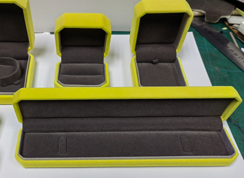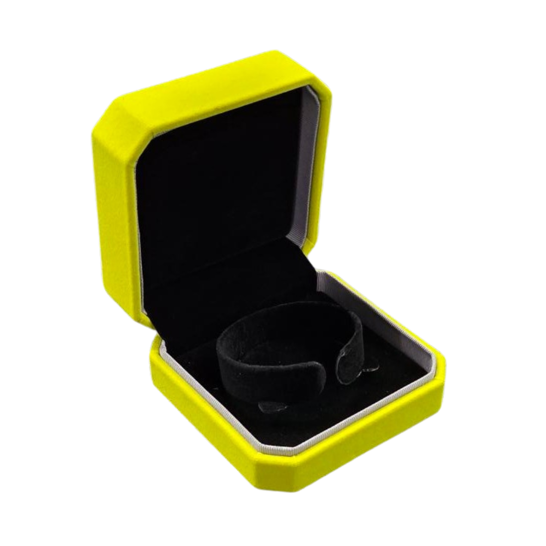 Suede Octagon Bangle Box – Yellow Suede with Black Interior and Grey Trim – 90 x 90 x 45mm high