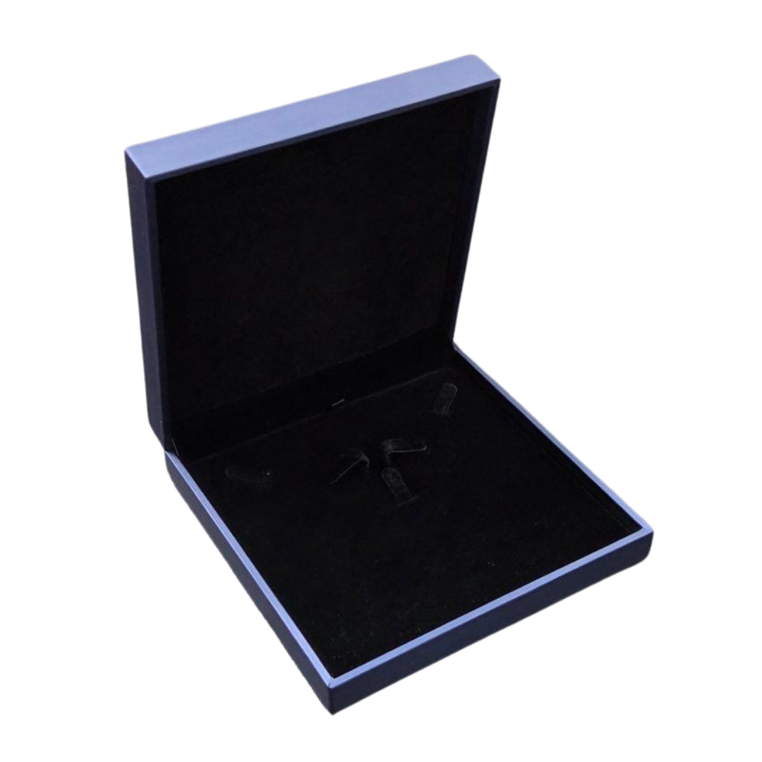 Classic Cushioned Top Necklace Box in Metallic Blue with Black Interior – 160 x 160 x 45mm