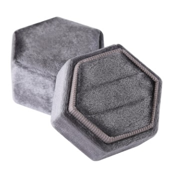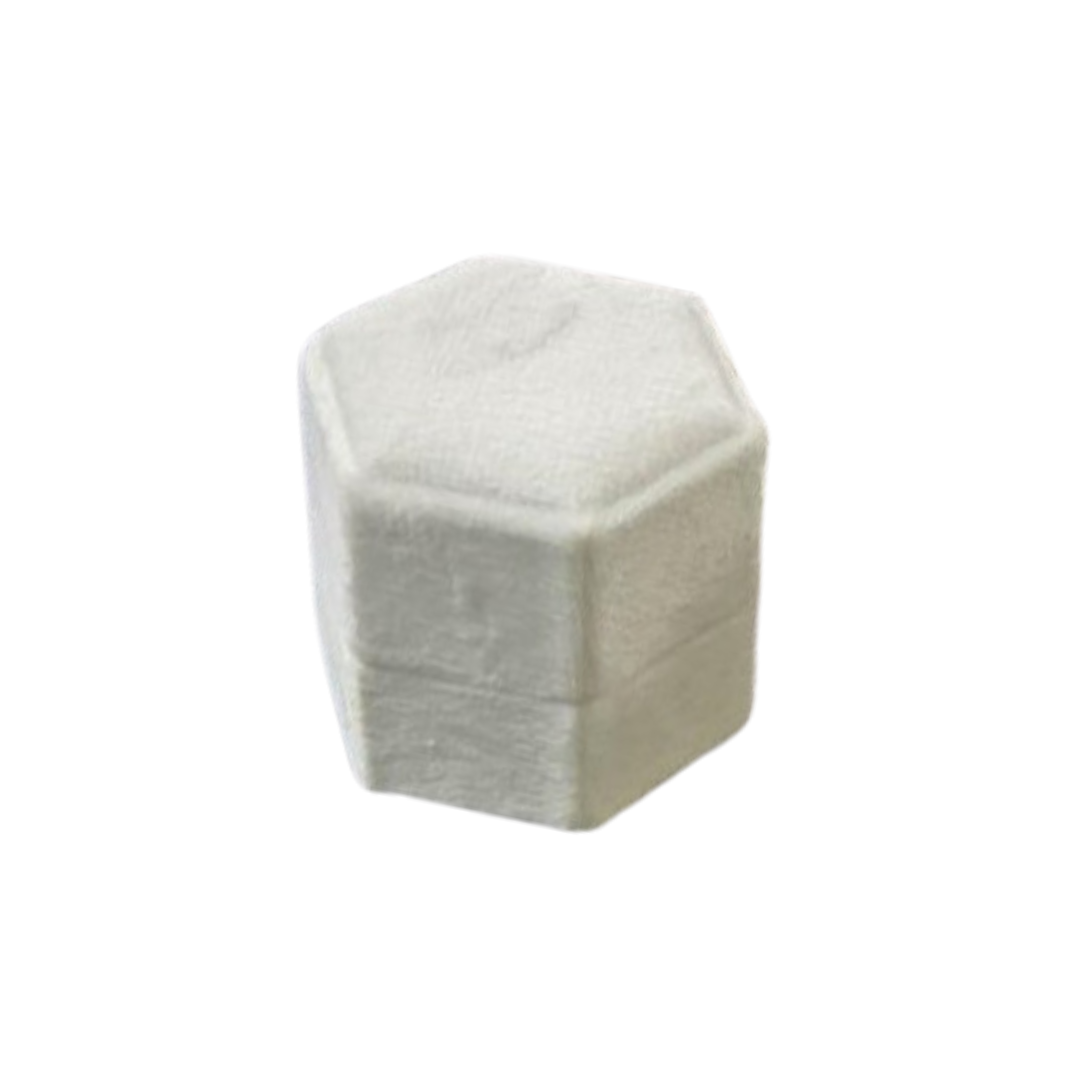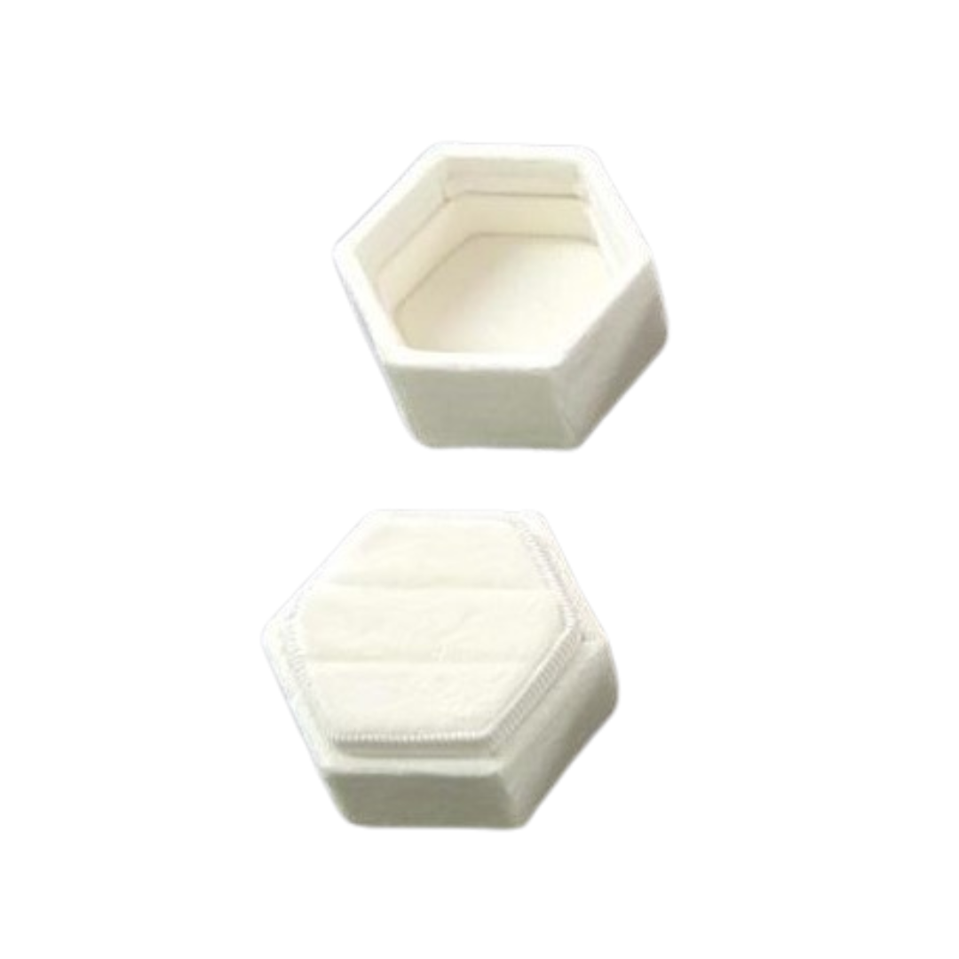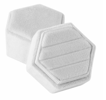 Velvet Hexagon 2 Ring Box in White – 50 x 50mm